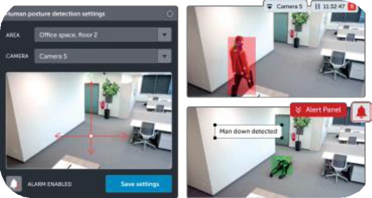 Detection of suspicious or abnormal behavior by recognizing certain human postures.