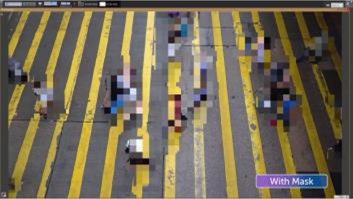 An intelligent, resource-optimized algorithm reliably masks objects in the camera's FOV while using minimal computing power. You can also use AI detection to hide ony certain objects, such as people.